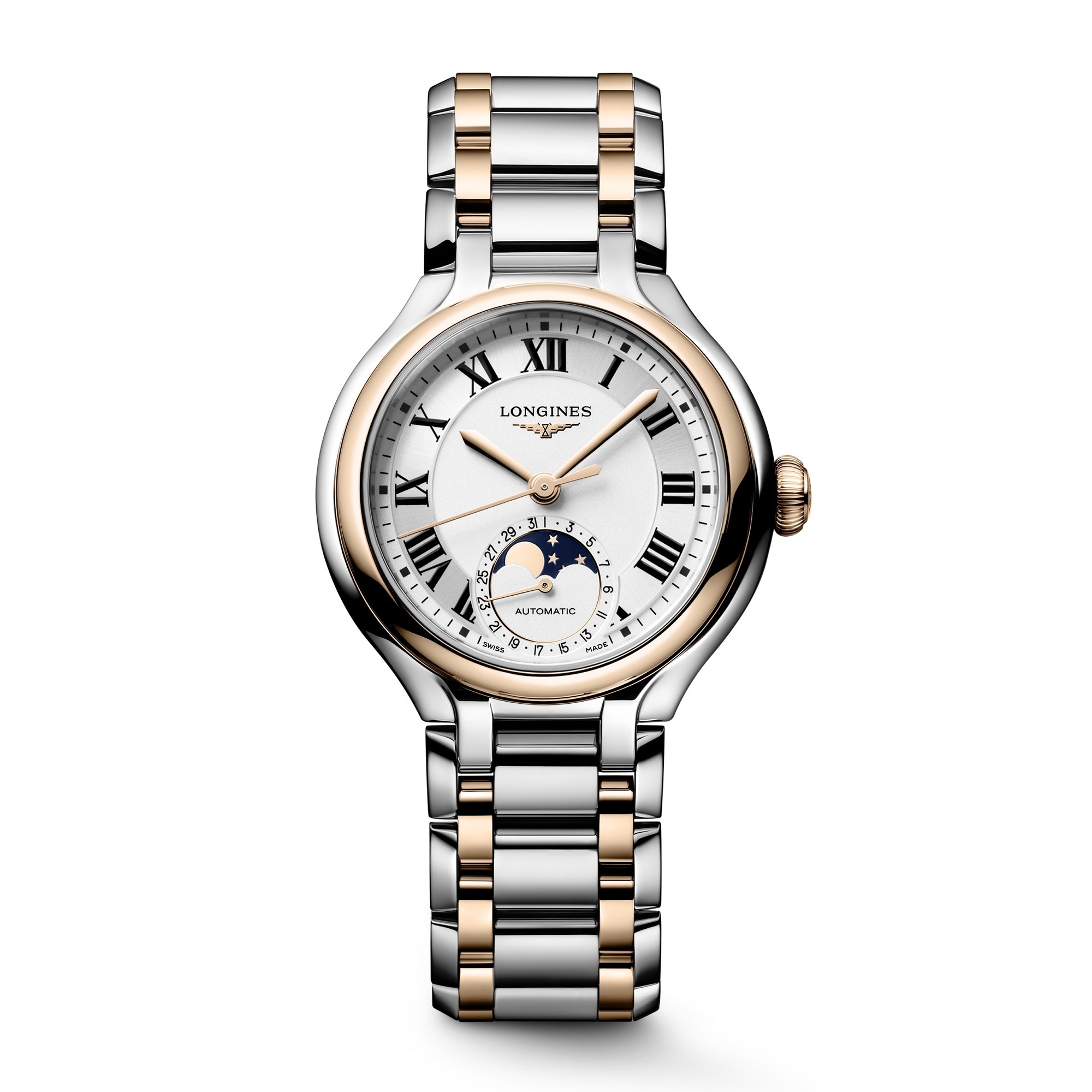 34mm表壳可选精钢或间金款,经过镜面抛光处理突出弧面轮廓的圆润感,整枚表厚度仅11.6mm,提供轻盈的佩戴体验。3点表冠的扁洋葱头造型让人想起满月。